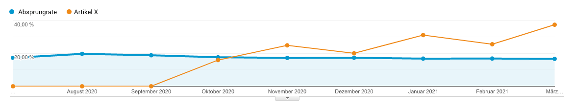 - Konkretisiere dein Problem: Aufgrund welcher beobachtbarer, ergo messbarer Symptome vermutest du Potenzial durch eine Optimierung? Das könnten beispielsweise eine steigende Absprungrate wie im Screenshot unten sein oder eine niedrige bzw. sinkende Newsletter-Anmelderate.