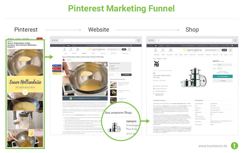 Entscheidend ist, dass sich der Content auf beiden Plattformen ergänzt und nicht doppelt! Während die Bilder bspw. ein Gericht anteasern (und damit dem Inspirationscharakter von Pinterest gerecht werden), erhält der Nutzer auf der Website eine detaillierte Kochanleitung oder allgemeine Küchentipps.