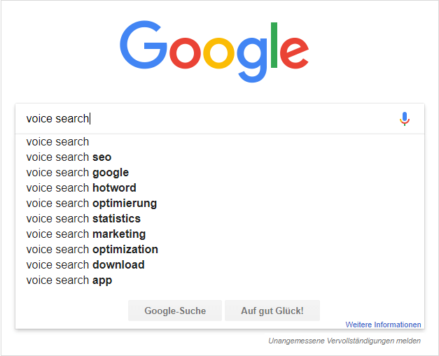 Voice Search (deutsch: Sprachsuche) beschreibt die sprachgesteuerte Nutzung der Suchmaschine von Google, die inzwischen per Mobile App sowie über den Google Chrome Browser auch am Desktop nutzbar ist. Mittlerweile können wir unzählige Apps per Sprache steuern, nicht nur die, die aus dem Hause Google (beispielsweise Google Maps), Apple (Siri), Microsoft (Cortana) oder Amazon (Alexa) stammen. Aufgrund der guten Usability (sogar die Barrierefreiheit ist gewährleistet) – sowohl auf mobilen wie auch stationären Endgeräten – integriert sich Voice Search ideal in unseren Alltag.
