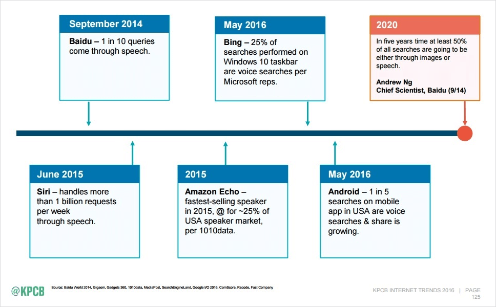 Bereits 2016 gab Google CEO Sundar Picha im Rahmen einer Keynote bekannt, dass schon 20 % der Suchanfragen über mobile Geräte per Sprache geschehen. Bis 2020 soll es gut die Hälfte aller Suchanfragen (über alle Plattformen, einschließlich Bing, Baidu & Co.) sein.